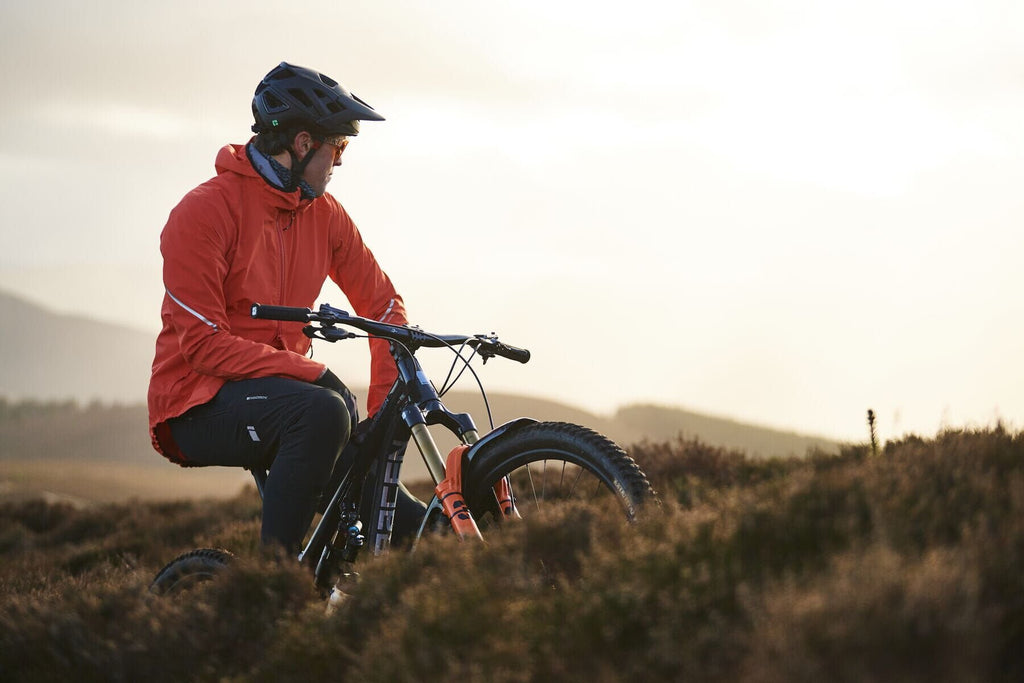 Lightweight waterproof mountain bike jacket with hood, protects from downpours in mild conditions. Cool enough to wear all day and small enough to pack down.